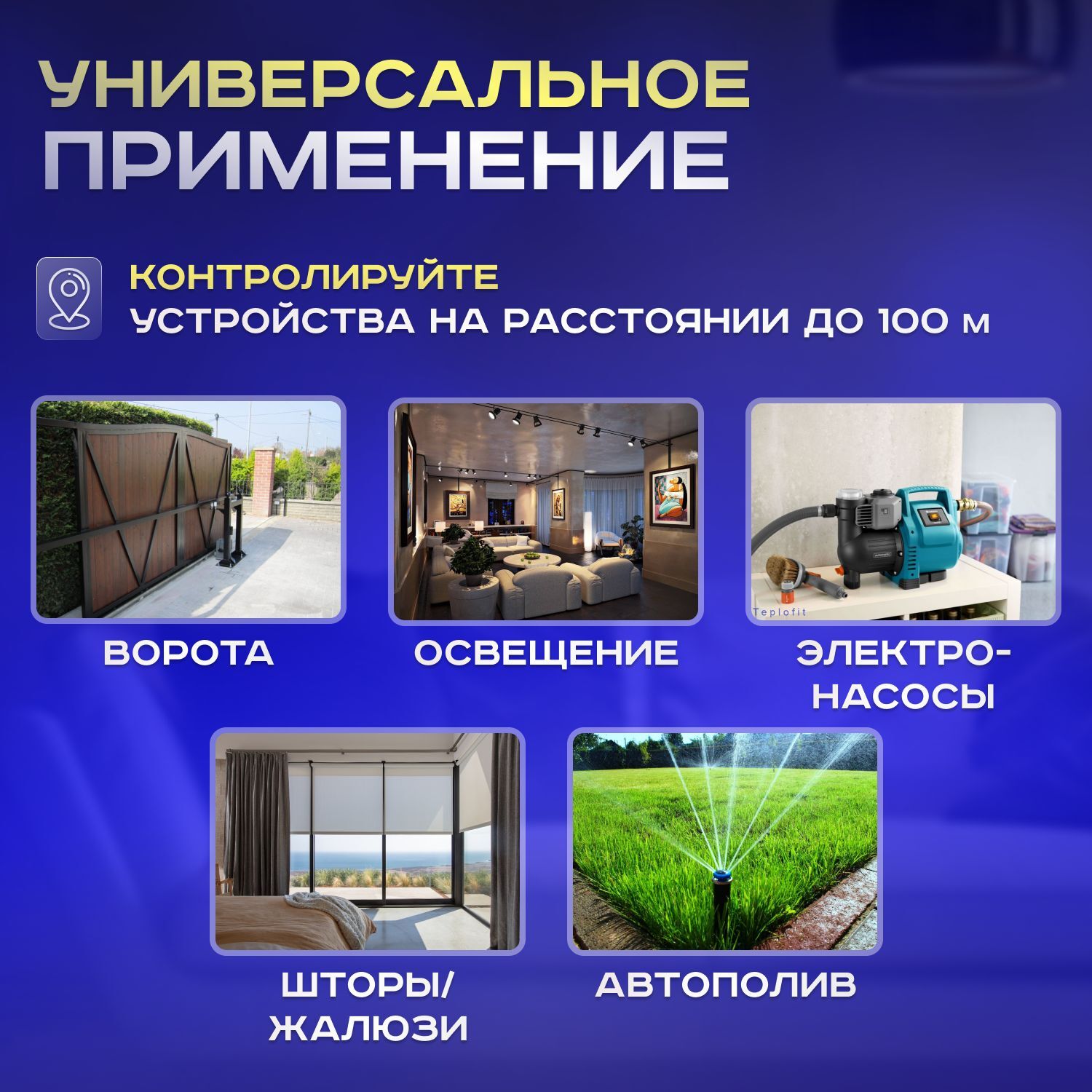 электроприбры; дистационное управление; дистанционный выключатель; вентиляция; отопление; ворота; автоприборы; бытовая техника; освещение; электронасосы; жалюзи; шторы; автополив; пульт управления;