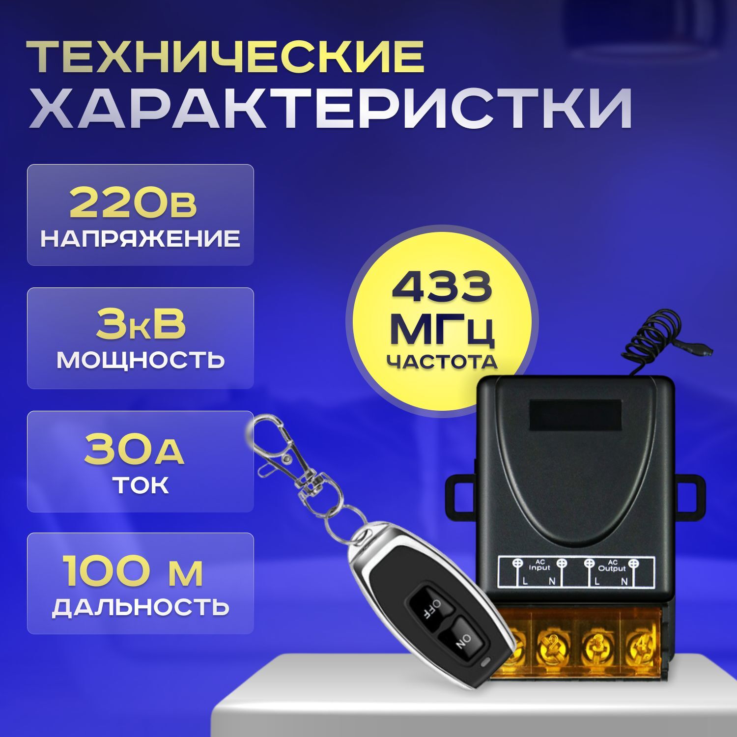 Радиоуправляемое реле 220В 30А 433МГц с дистанционным управлением. Беспроводной выключатель.Реле для ворот, освещения, электрона