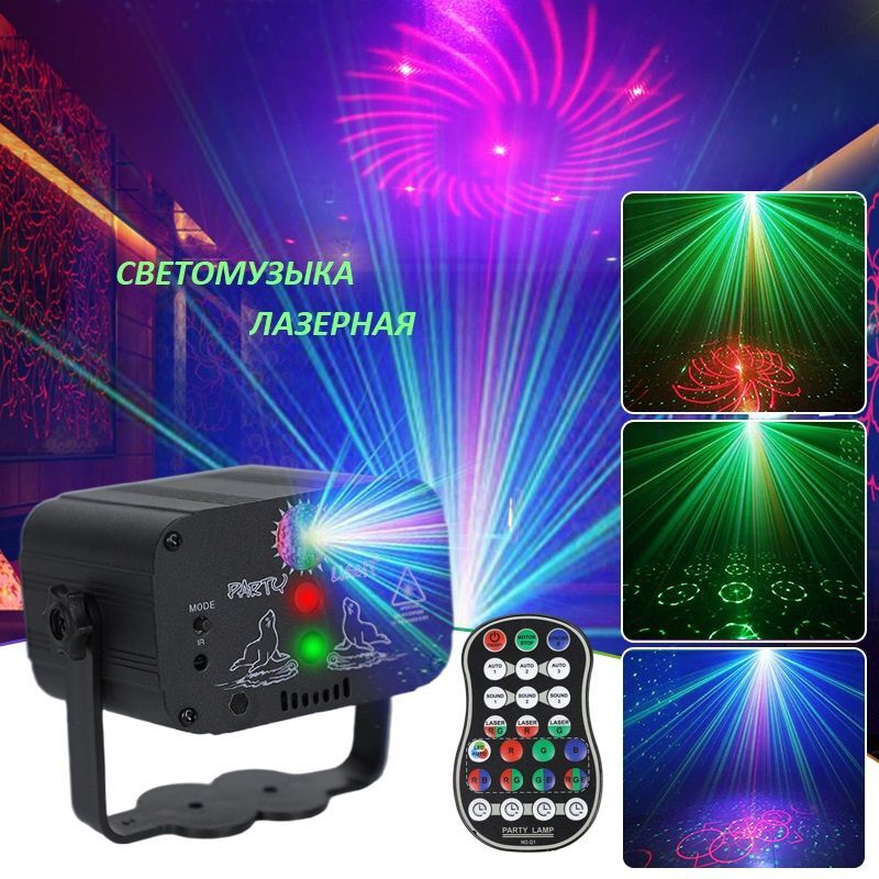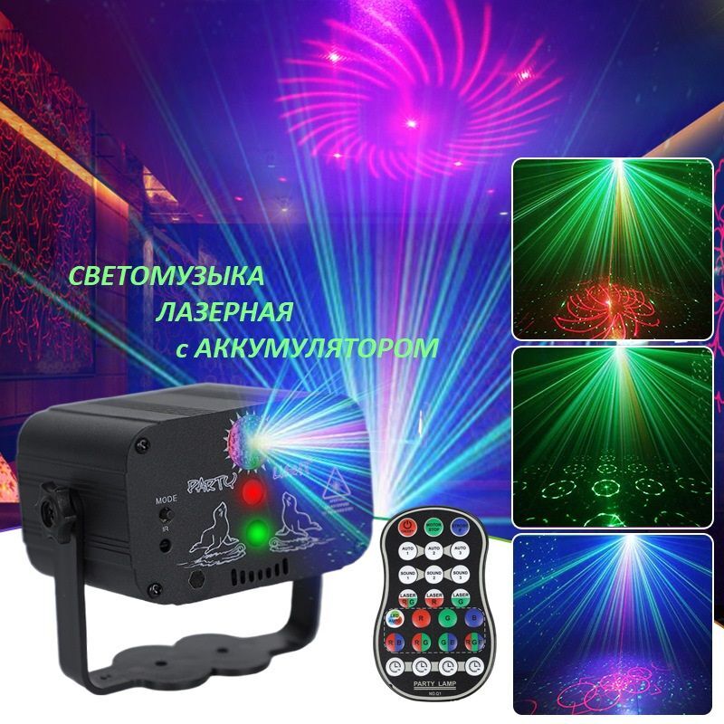 Светомузыка для дома. Лазерный проектор с пультом управления и встроенным аккумулятором. Цветомузыка, лазерный мини проектор, ст