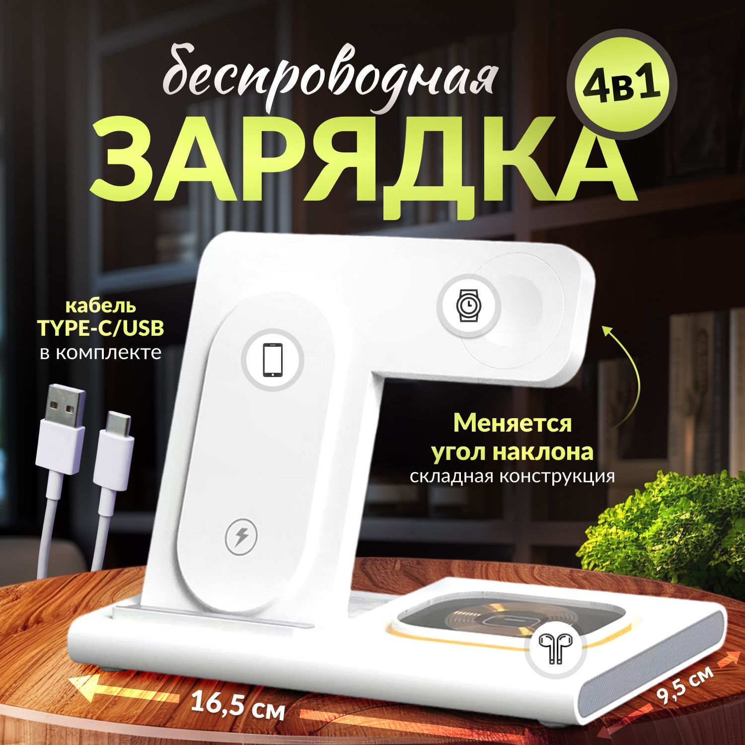 Беспроводное зарядное устройство; зарядка беспроводная для iPhone; умные часы Самсунг; TWS; зарядка для iWatch; для айфона; кабель Type-C; 4 в 1; 3 в 1; подарок; подарок мужчине; подарок любимой женщине; подарок на день рождения; AirPods