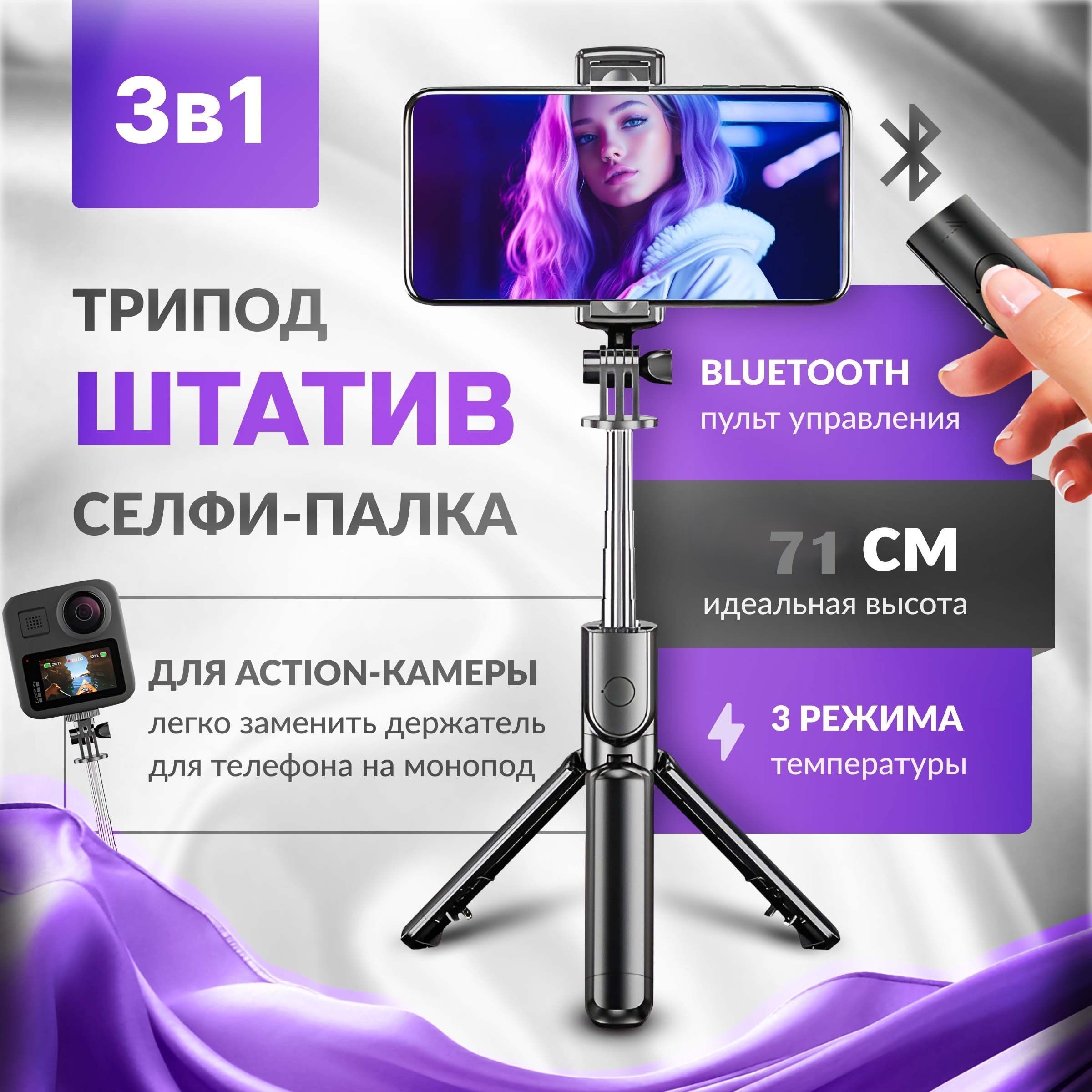 Штатив для телефона c лампой, Селфи палка для смартфона с Led подсветкой, Монопод трипод с Bluetooth пультом управления
