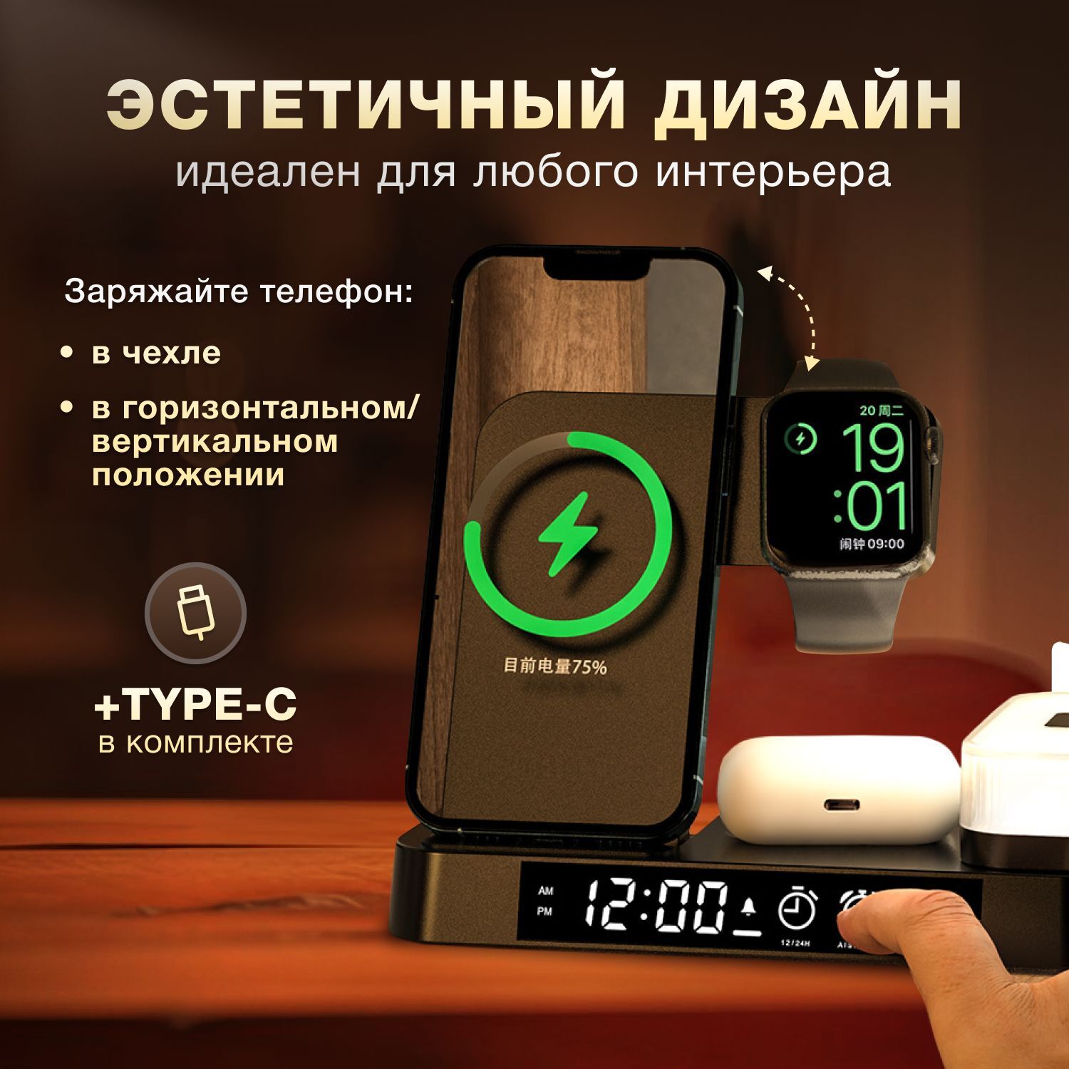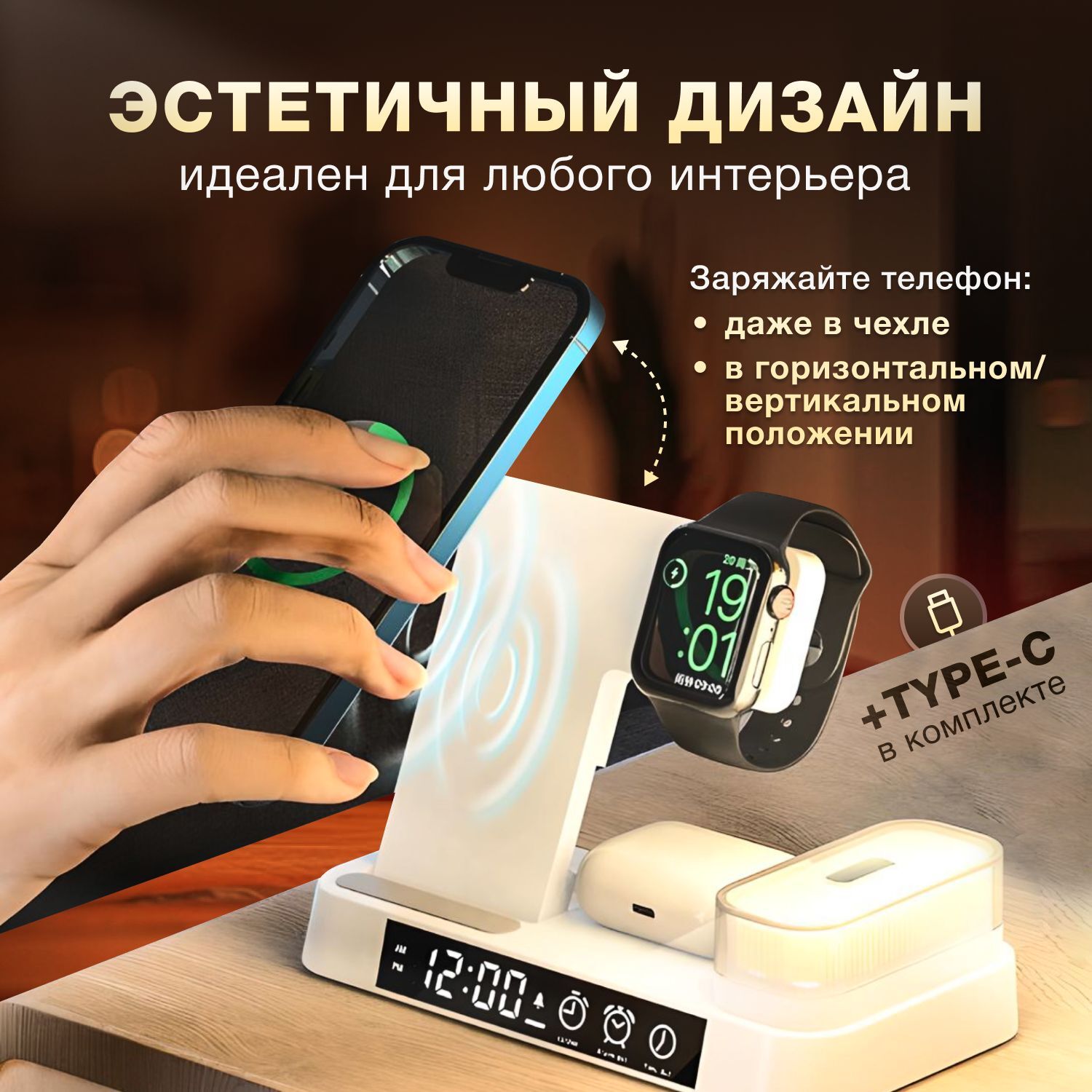 Беспроводное зарядное устройство; зарядка беспроводная для iPhone; заряжать умные часы; TWS; зарядка для iWatch; для айфона; кабель Type-C; 4 в 1; 3 в 1; подарок; подарок мужчине; подарок любимой женщине; подарок на 23 февраля; подарок на день рождения
