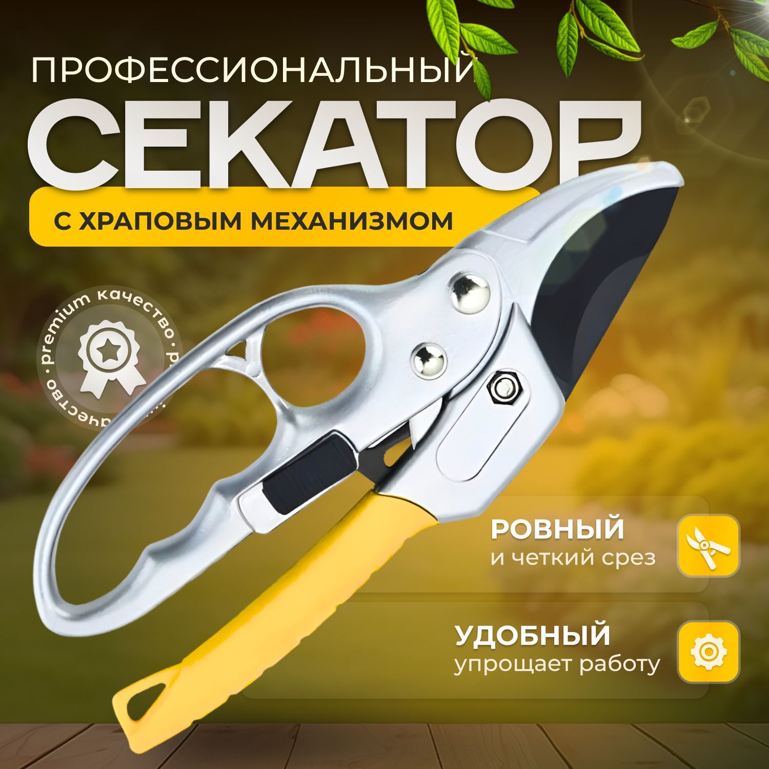 секатор; садовый; профессиональный; плоскостной; храповый механизм; обрезка; SK5; японская сталь; острые лезвия; тефлоновое покрытие; коррозия; поэтапная резка; деревья; сучкорез; порошковая окраска; TRP покрытие; сад; садовый инструмент; подарок; садовод